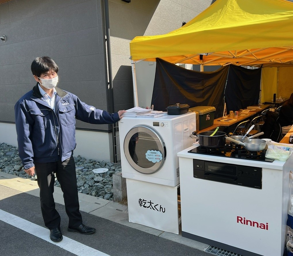 ↓写真の日は 衣類乾燥機の「乾太くん」とガスコンロの「デリシア」を会場で実際にガスをつなぎ、
