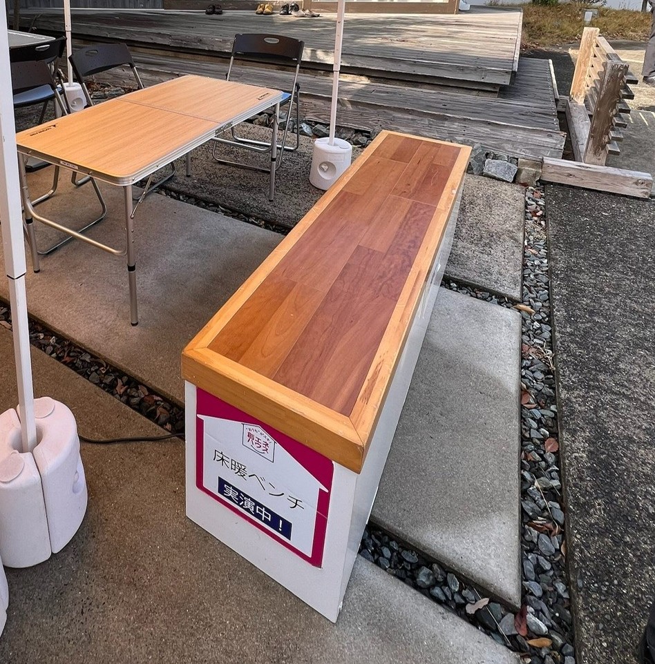別のイベントでは真冬の開催でしたので床暖房ベンチを持参しました。